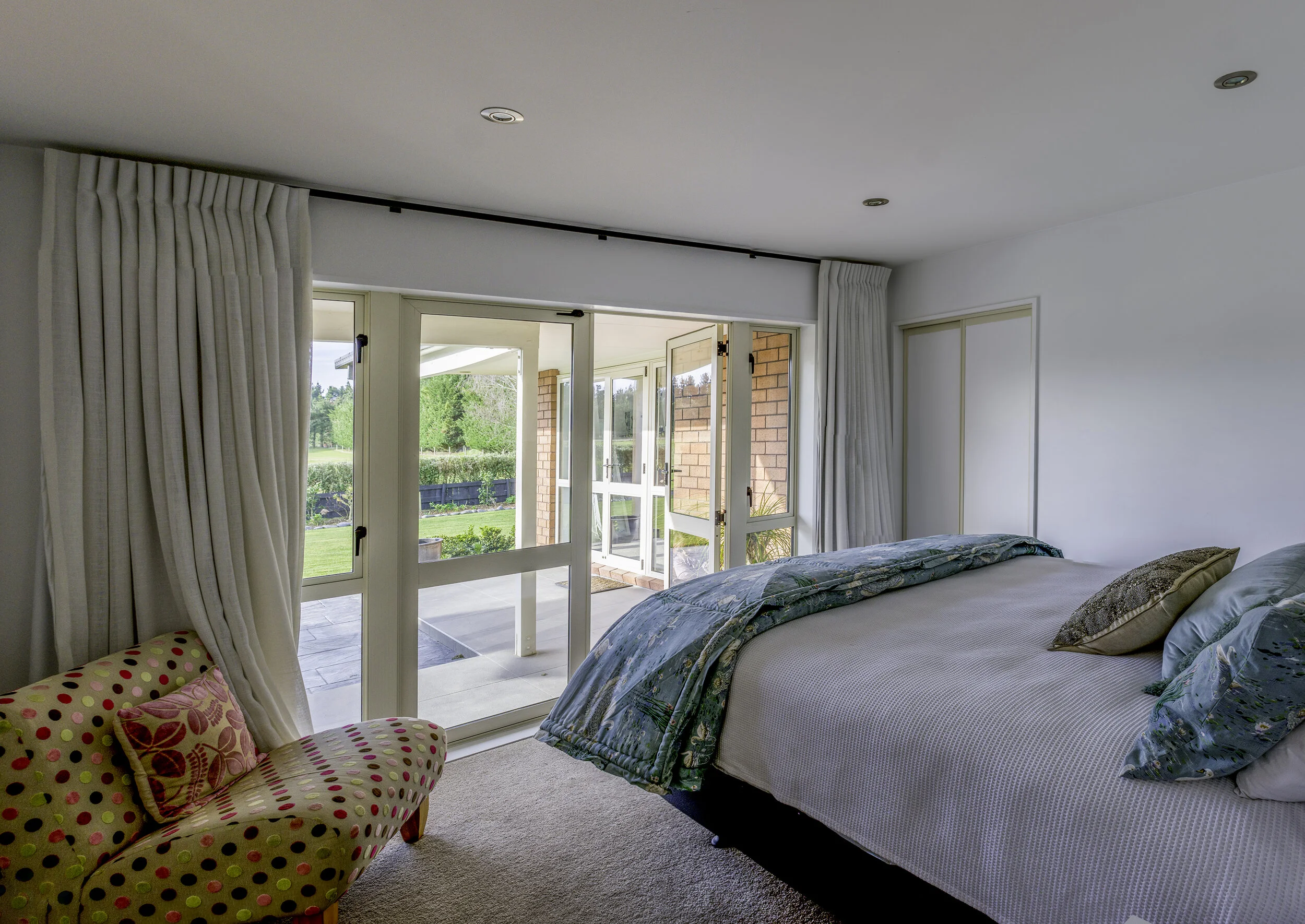A deluxe room. A Queen Bed with double opening French doors onto the garden terrace and own bathroom across the hall with gowns for guests to use. Includes Continental breakfast. A cooked breakfast or dinner is an optional extra.